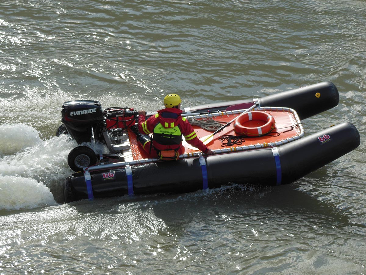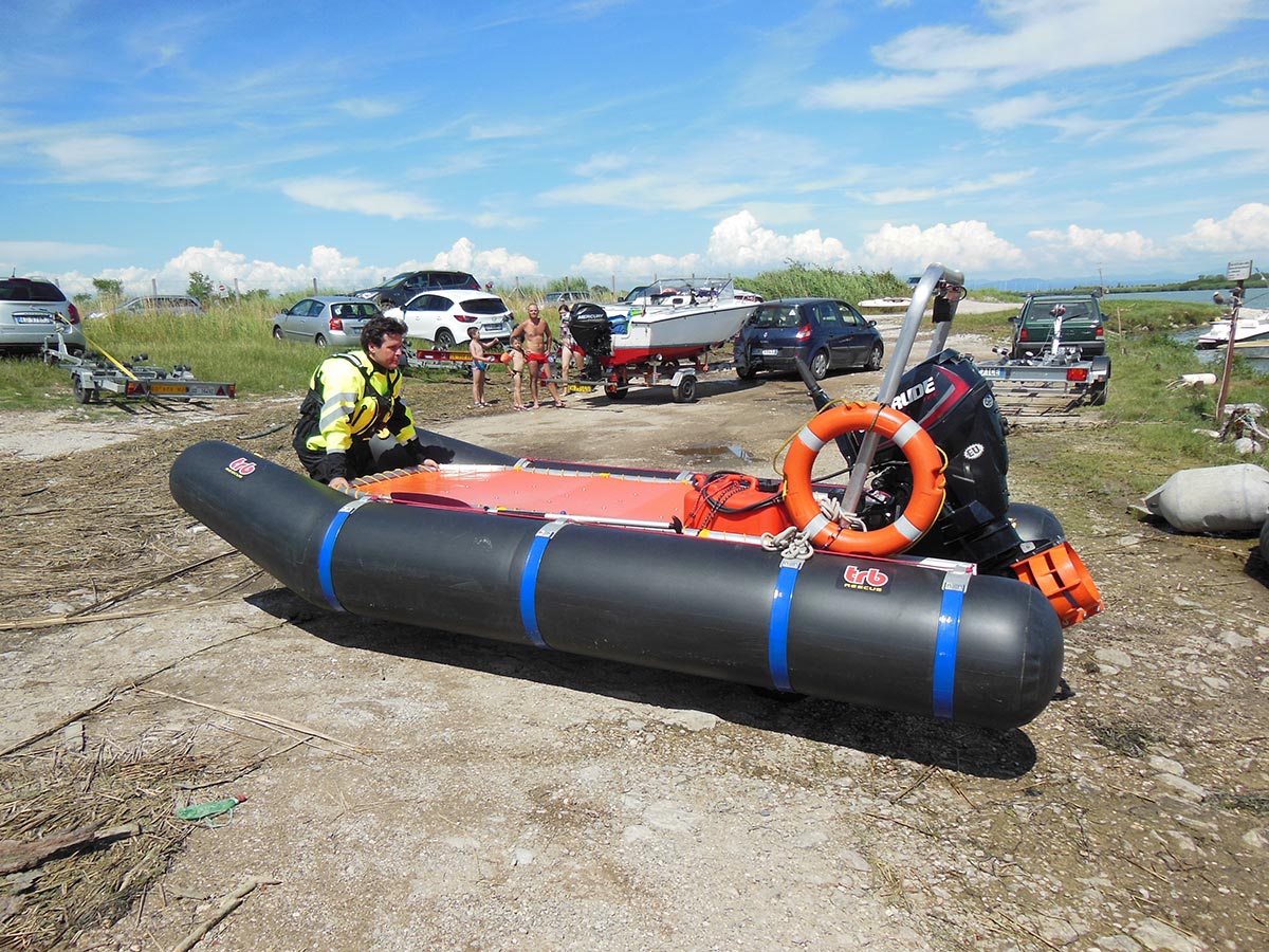 Imbarcazione destinata ad utilizzi professionali per interventi d’emergenza in ambito fluviale ed alluvionale con possibilità di manovra a remi e a motore